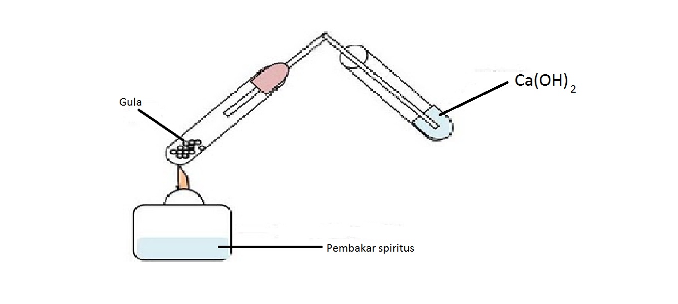 Apabila senyawa sukrosa (gula pasir) dibakar atau dioksidasi sempurna maka karbon akan berubah menjadi gas CO2 dan hidrogen akan berubah menjadi H2O, melalui reaksi :